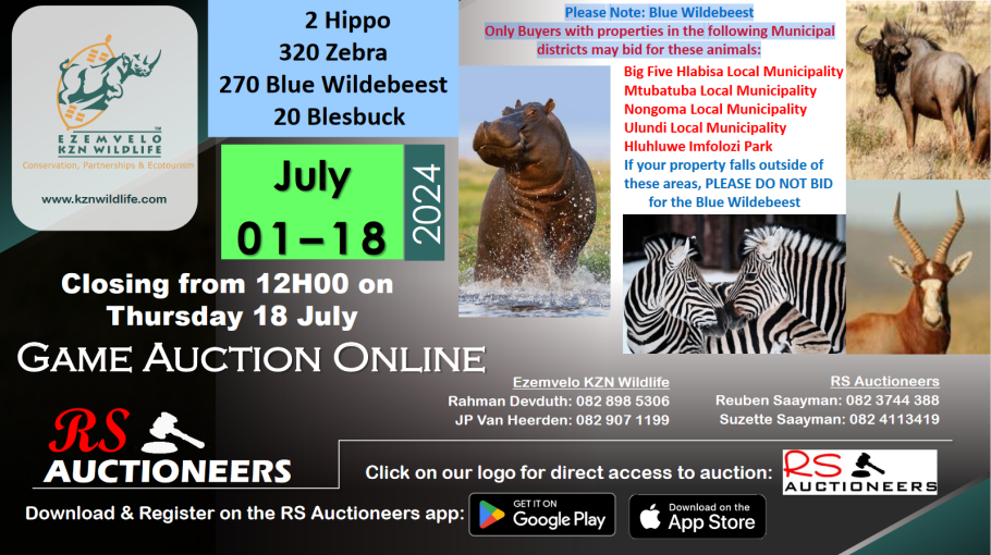 Please Note: Blue Wildebeest Only Buyers with properties in the following Municipal districts may bid for these animals: