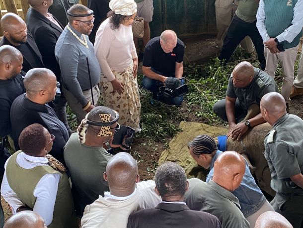 Speaking after witnessing the rhino dehorning, King MisuZulu stated that “We need to support programs where we protect our natural resources, e.g our animals looking at everything that affects our animals negatively. We need to give great support especially those communities that are close to these game reserves and we look at their leadership to work closely with the nature conservationists.”